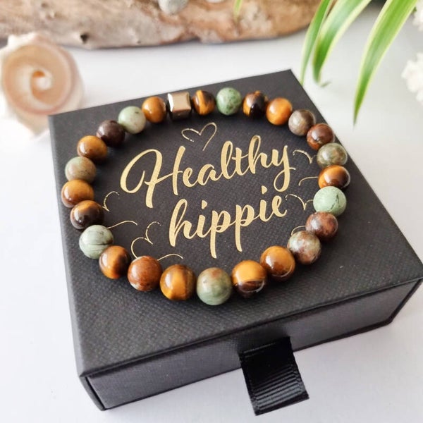 Een beschermende steen die de aandacht naar binnen richt en naar het grotere geheel. De steen beschermt tegen negatieve invloeden van buitenaf en geeft inzicht in onszelf en anderen. De steen helpt om afstand te nemen, het overzicht te bewaren, informatie te integreren en je doelen te bereiken. In moeilijke periodes kan tijgeroog kracht, moed en vertrouwen geven en helpen met interne conflicten, dilemma’s, twijfel en besluiteloosheid.
