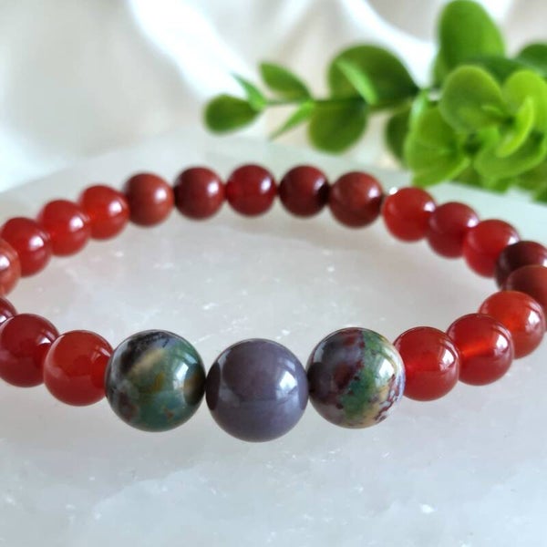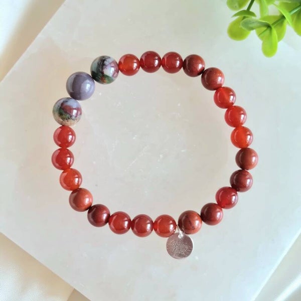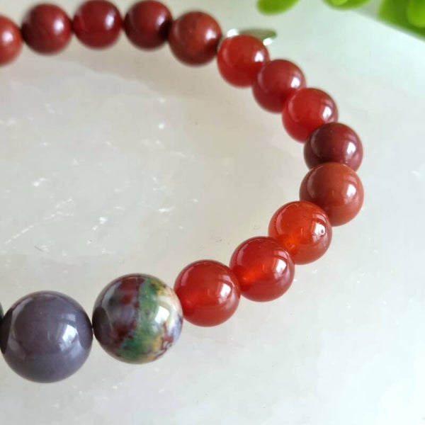 Jaspis werkt aardend en beschermend. De steen helpt je je doelen waarmaken en ideeën omzetten in actie. Het maakt strijdlustig, daadkrachtig, volhardend, vastberaden en helpt je ergens voor 100% voor gaan. Jaspis helpt je ook voor jezelf opkomen en geeft moed, maakt je weerbaar en assertief en vermindert angst voor conflicten. Het maakt oprecht, eerlijk, hulpvaardig en zorgt voor balans in lichaam, ziel en geest. Rode jaspis is één van de meest dynamische en activerende jaspis soorten. Het werkt aardend en bevordert de energiedoorstroming door blokkades te doorbreken in de onderste chakra's en knieën. De steen werkt verwarmend en voorziet het lichaam van energie. Het helpt je in je kracht staan en bevordert de wilskracht.